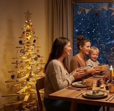 Dit was voor ons een openbaring. Een houten kerstboom (vaak van latjes die je kunt draaien) is onverwoestbaar en geeft een prachtige, moderne Scandinavische sfeer.